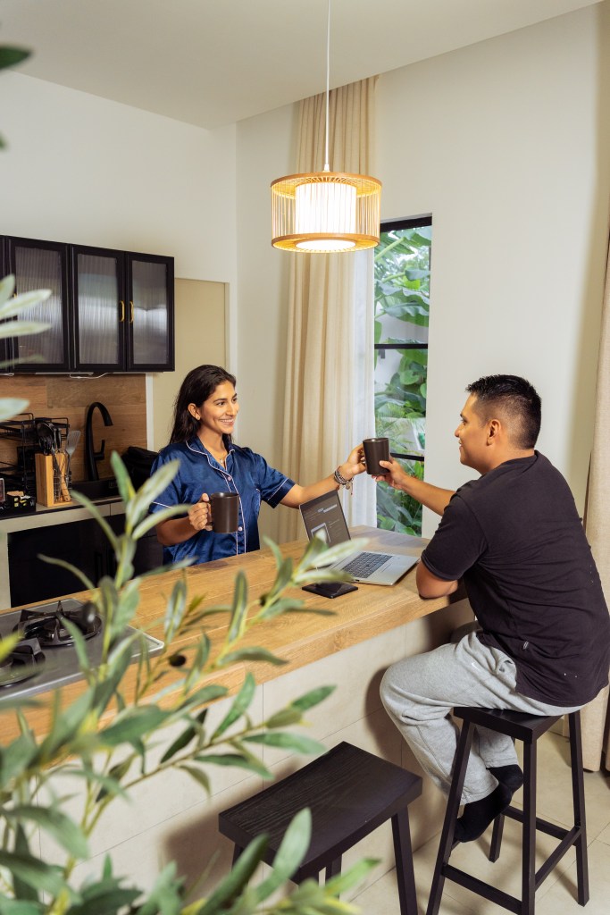 The tiny villa with private pool includes a fully equipped kitchen with modern appliances and all the essentials you need to prepare meals comfortably. Whether you’re making a quick breakfast or cooking dinner, the kitchen is ready to support your needs during your stay.