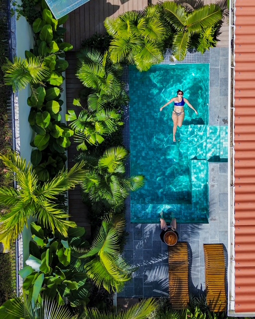 Imagine plunging into the crisp, cool waters of your private pool, the refreshing chill embracing you as the sun blazes overhead. Surrounded by lush greenery and authentic local life, it’s a tranquil escape from the tropical heat—pure bliss.